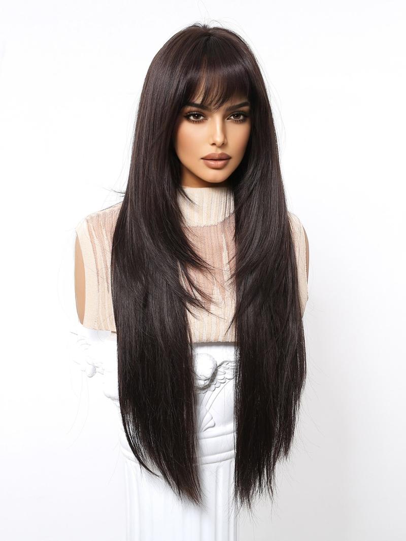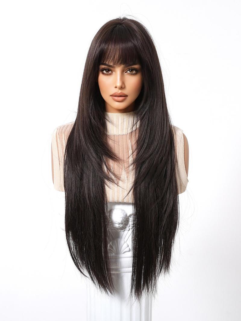 28 Inch Long Straight Wigs for Women, Gorgeous with Bangs, Synthetic Full for Party, Daily Use, Synthetic Hair Wigs